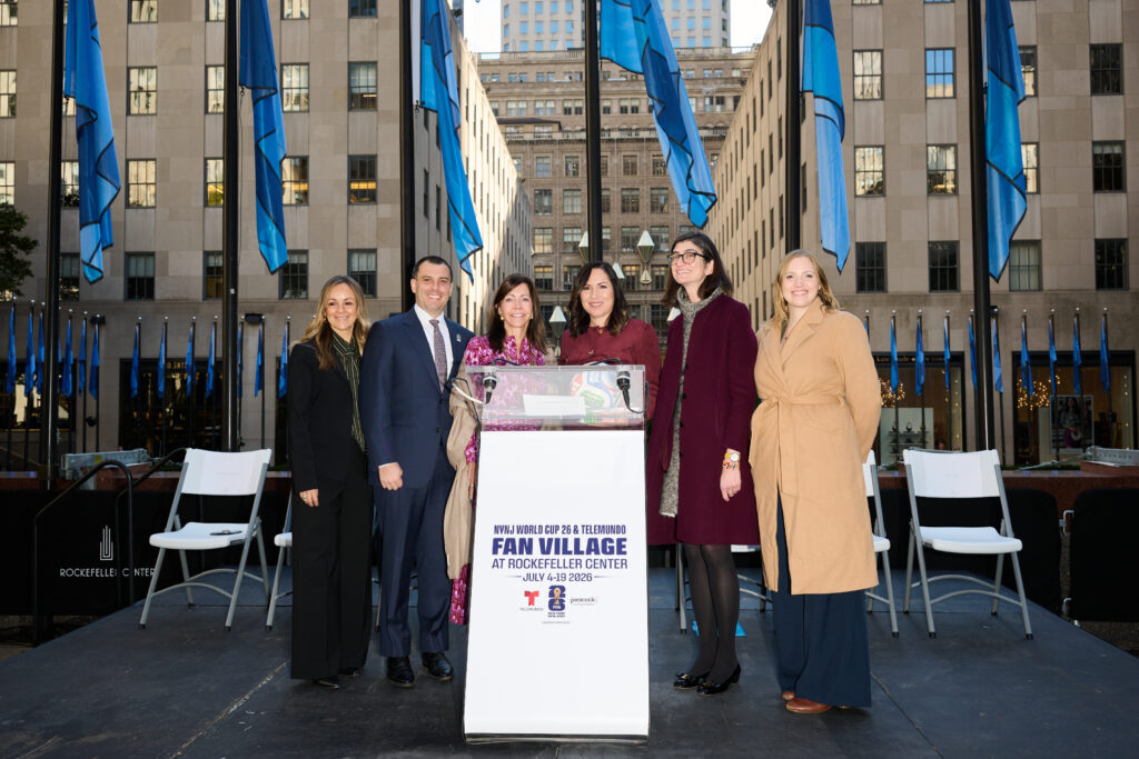 El Comité Organizador de la Copa Mundial 26™ de Nueva York y Nueva Jersey, Telemundo y Rockefeller Center anunciaron una innovadora alianza y presentaron la Fan Village de la Copa Mundial, una cancha de fútbol que estará disponible para el público del 4 al 19 de julio 2026. Con el icónico telón de fondo de uno de los lugares más emblemáticos de la Gran Manzana, transformará el corazón de la ciudad para fanáticos del deporte de todo el mundo.